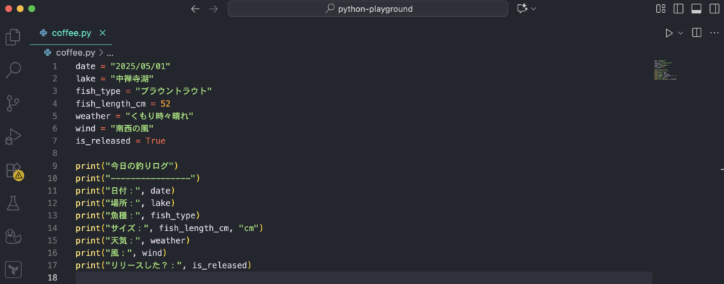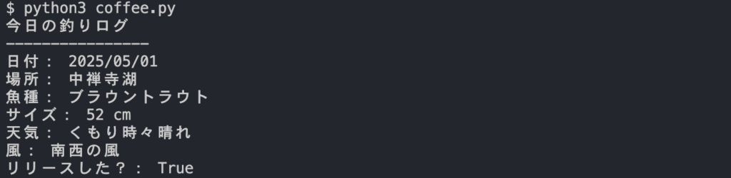 「自分の世界観(釣り・コーヒー)を、Pythonの中に持ち込めている状態」